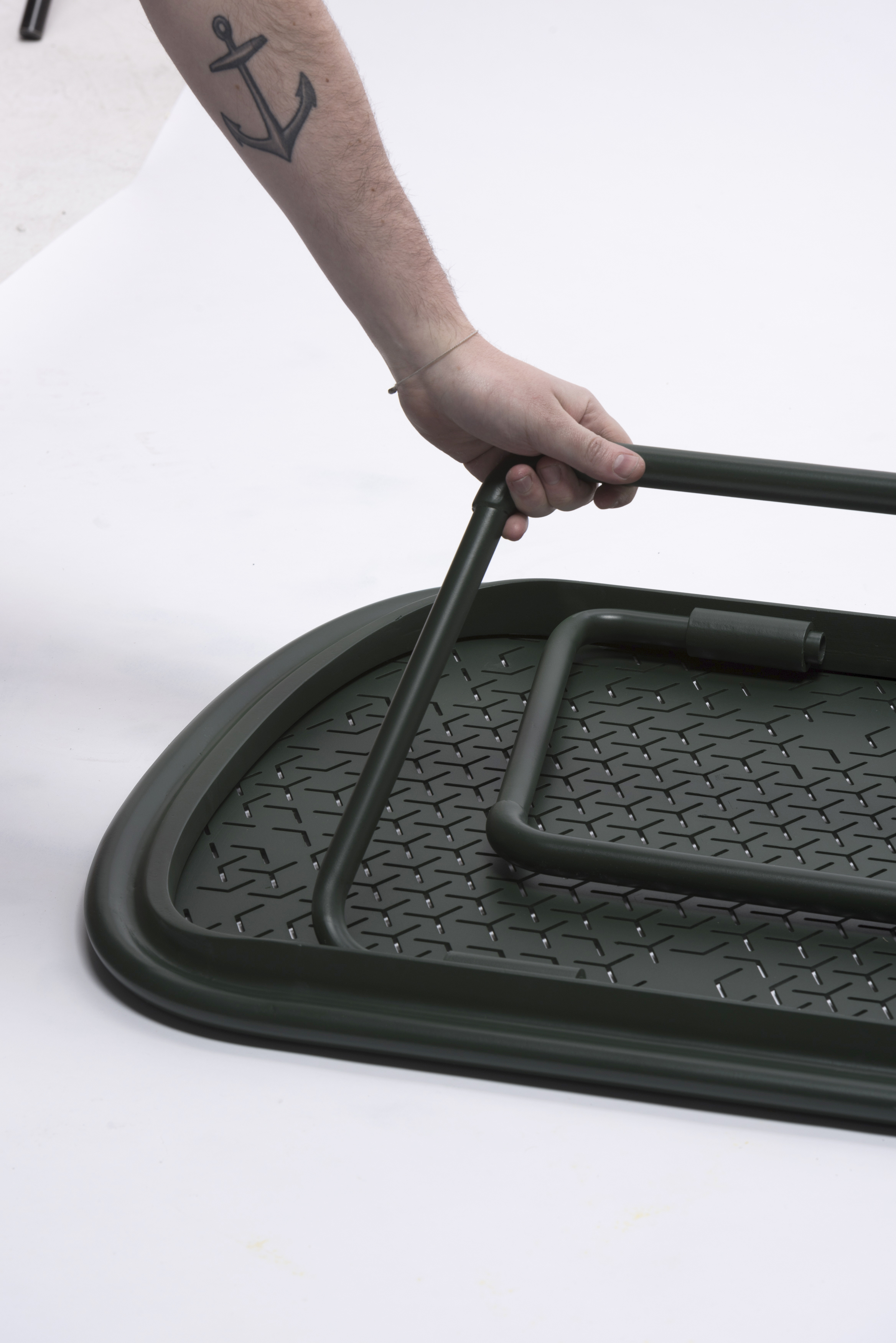 In 1865 the industrial revolution was in full swing, bringing droves of people into the cities. These people often lived and slept in inhumane quarters and on improvised bedding. Around the same time Louis Vuitton patented the collapsible trunk bed, intended to allow travelers to bring the comfort of home with them. Improvised living conditions are unfortunately still highly topical. We focused on the standard camp bed, that has gone largely unchanged for decades and analyzed its weaknesses. Usability, hygiene, comfort.